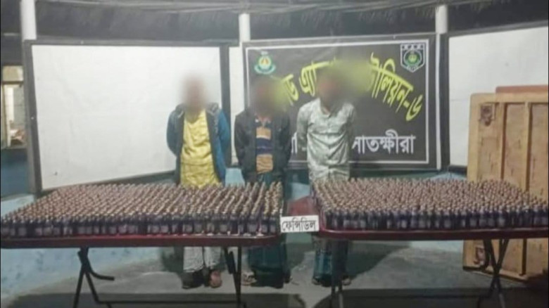 সাতক্ষীরার দেবহাটা উপজেলায় র্যাবের বিশেষ অভিযানে বিপুল পরিমাণ কোরেক্স ও ফেন্সিডিলসহ ৩জনকে গ্রেপ্তার করা হয়েছে। শনিবার রাত প্রায় পৌনে ২টার দিকে কুলিয়া এলাকায় এ অভিযান পরিচালনা করা হয়।